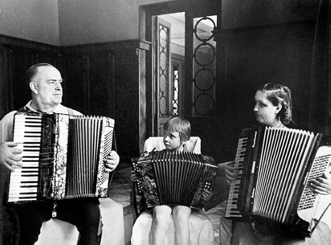 Эра Георгиевна: Спустя какое-то время отец собрал у нас на даче своих друзей – военных. Среди гостей были Буденный, папин старинный друг генерал Крюков с женой Лидией Руслановой, Горбатов, Чуйков, Ротмистров, Руденко и другие. Это был веселый вечер – были тосты, танцы, песни. Русланова пела, папа взялся за баян.