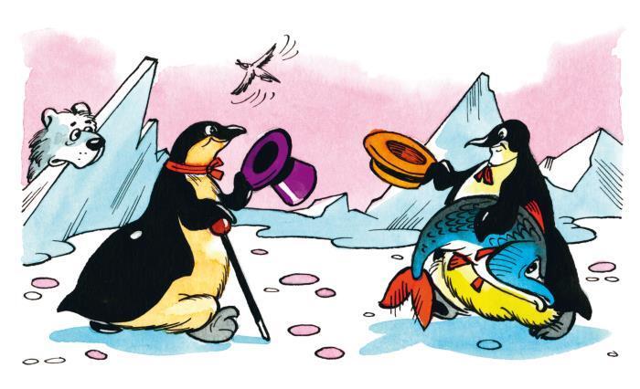 – Там живут пингвины, – улыбнулся Чижик, – самые красивые птицы на свете. У каждой птицы строгий фрак, словно это и не птица вовсе, а дирижёр.