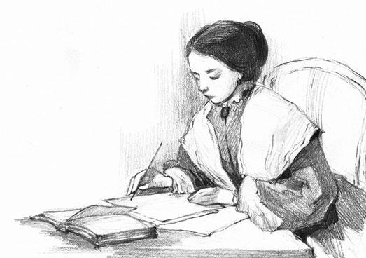 Петя протягивает руку — потрогать вышитый цветок. Но бабушка превращается в старшего брата. Николенька считает ворон, отложив учебник с французскими глаголами. Вихры топорщатся надо лбом. А вот сестра Наташа — склонила над тетрадкой аккуратно причёсанную головку: острое пёрышко скользит по строчке, оставляя за собой ровные ряды букв. Рядом с сестрой Оленька — дочка папенькиной кузины. Кузина овдовела и разорилась, поэтому Оленька живёт у Семёновых. Глаза у неё нежные, лазоревые. Они смотрят ласково и печально.