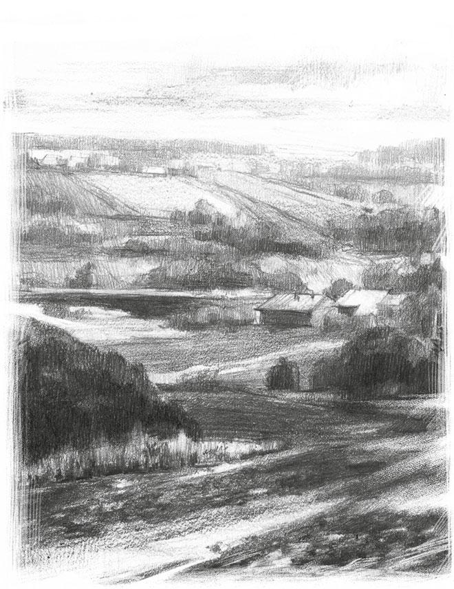 Однажды утром, накинув старый тулупчик, Петя отправился в путешествие, которое давно задумал. Запястья торчали из рукавов. Но едва ли Петя замечал это. Его ждало заповедное место — Зерка́лы, — расположенное в пяти верстах2 от усадьбы. Конюх рассказывал, что там есть глубокие овраги, куда весной водопадами льются ручьи с полей и соединяются в гладкое, как зеркало, озеро. Правда ли это? Пете хотелось выяснить.