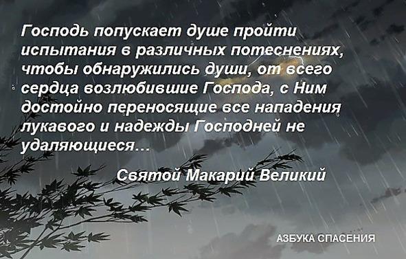 Когда мы подвергаемся скорби, Бог видит это. Это совершается не только по Его попущению, но и по Его всесвятому промышлению о нас. Он попускает нам потомиться за грехи наши во времени, чтоб избавить нас от томления в вечности. Часто случается, что тайный и тяжкий грех наш остается неизвестным для человеков, остается без наказания, будучи прикрыт милосердием Божиим; в это же время или по истечении некоторого времени принуждены бываем пострадать сколько-нибудь вследствие клеветы или придирчивости, как бы напрасно и невинно. Совесть наша говорит нам, что мы страдаем за тайный грех наш! Милосердие Божие, покрывшее этот грех, дает нам средство увенчаться венцом невинных страдальцев за претерпение клеветы и вместе очиститься наказанием от тайного греха. Рассматривая это, прославим всесвятый промысл Божий и смиримся пред ним.