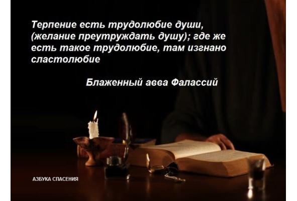Терпение есть трудолюбие души, (желание преутруждать душу), где же есть такое трудолюбие, там изгнано сластолюбие. Блаженный авва Фалассий