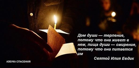 «Дом души — терпение: потому что она живет в нем, пища души — смирение: потому что она питается им» (Цветособрание святого Илии, гл.62, Добротолюбие, ч.4), — сказал святой Илия Евдик. Точно: питаясь святою пищею смирения, можно пребывать в святом дому терпения. Когда же недостанет этой пищи, то душа выходит из дому терпения. Как вихрь похищает ее смущение, уносит, кружит. Как волны подымаются в ней различные страстные помыслы и ощущения, потопляют ее в глубине безрассудных и греховных размышлений, мечтаний, слов и поступков. Душа приходит в состояние расслабления, мрачного уныния, часто приближается к пропастям убийственного отчаяния и совершенного расстройства. Хочешь ли неисходно пребывать в святом дому терпения? — Запасись пищею, необходимою для такого пребывания: стяжи и умножай в себе помышления и чувствования смиренные.
