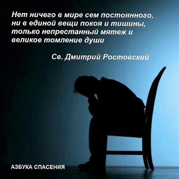 Нет ничего в мире сем постоянного, ни в единой вещи покоя и тишины, только непрестанный мятеж и великое томление души. Святитель Дмитрий Ростовский