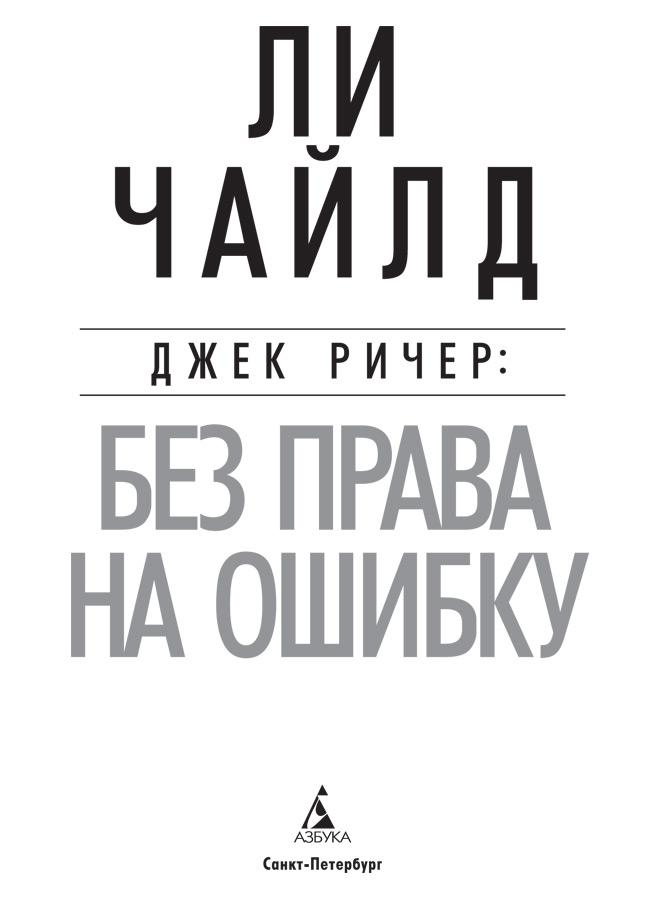Джек Ричер Без права на ошибку : роман / Ли Чайлд ; пер. с англ. В. Яковлевой. — СПб. : Азбука, Азбука-Аттикус, 2025. — (Звезды мирового детектива).