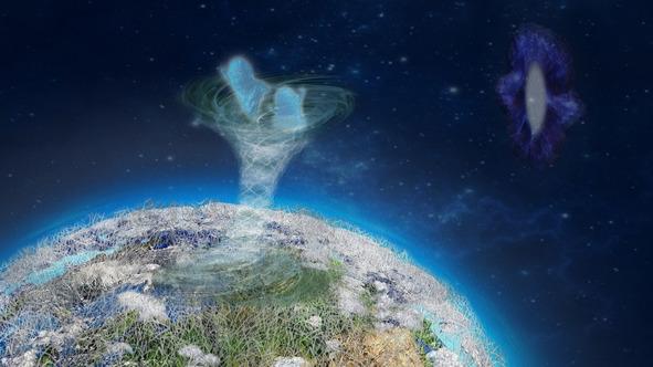 Я увидела воронку из плотного серо-зелено-изумрудного цвета. Она широким краем была опущена вниз, а тонкой стороной уходила вверх так высоко, что невозможно было разглядеть её до конца. Затем зрение перенесло меня внутрь этой конструкции, и я как бы снизу увидела двух существ, которые поднимались вверх по спирали в образовавшейся воронке. Существа повернулись ко мне, и появилась уверенность, что это я сама и Анатолий, причём он был спереди, а я немного позади. По форме они напоминали двух лизунов из фильма «Охотники за привидениями», но отличались от них цветом и прозрачностью. Мы были не зелёными, а скорее голубовато-серыми и полупрозрачными, как облака.