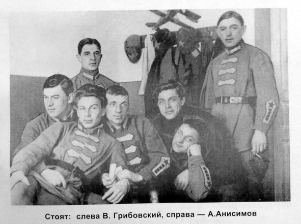 Отец учился летать, а потом служил с такими известными впоследствии лётчиками, как Александр Анисимов, Примо Джибелли. Они были хорошими друзьями, об этом часто вспоминал отец. На большинстве фотографий того периода (групповых) они стоят вместе. На подаренной отцу фотокарточке, в честь окончания Серпуховской школы, Анисимов написал: «На память доброму Славе!» Служили они в 3-й Отдельной Киевской истребительской эскадрилье. После перевода отца в Серпухов их пути разошлись. Когда отец получил назначение в Москву в 1929 году, друзья вновь встретились. Часто бывали друг у друга в гостях (это уже на моей памяти). Так было до самой смерти Александра Анисимова.