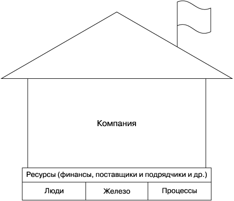 Есть ли простой способ научиться представлять дела организации без лишней детализации? Нас часто выручало восприятие компании как комбинации трех фундаментальных составляющих: люди (в том числе поставщики/подрядчики и клиенты), железо и процессы. Конечно, есть и другие, но мы осознанно в рамках этой книги фокусируемся только на трех самых важных.