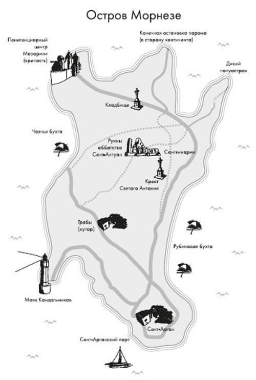 – Тебя наняли на лето, чтобы обеспечить безопасность отдыхающих, так, да? Видишь ли, мальчик мой, на ту чашу твоих весов, где беглый арестант, надо добавить несколько гирек. К примеру, все, что ты видишь на острове Морнезе, это кемпинги, площадки для игры в петанк, семейные прогулки на велосипедах и девушки топлес. Но ты наверняка слышал, что под всем этим монахи за восемь веков выкопали настоящий лабиринт, километры коридоров, которые начинаются от аббатства Сент-Антуан. И теперь ни у кого нет планов этих подземелий.