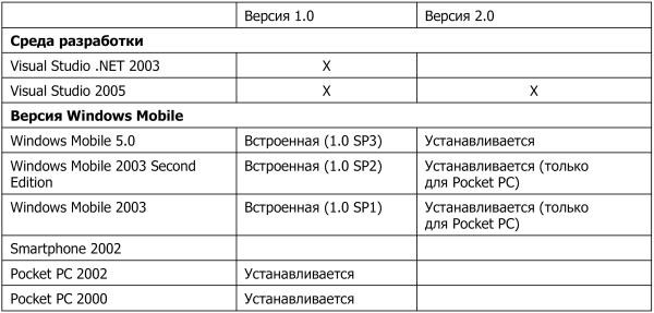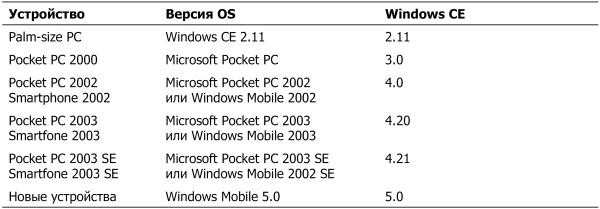Таблица 1.1. Соответствие поколений устройств Pocket PC, версий Windows Mobile и Windows CE