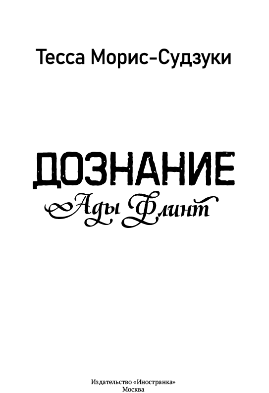 Дознание Ады Флинт : роман / Тесса Морис-Судзуки ; пер. с англ. Е. Шинкаревой. — М. : Иностранка, Издательство АЗБУКА, 2026. — (Иностранка. Роман с историей).