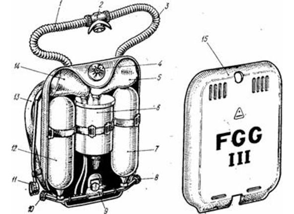 Дыхательный аппарат FGG III фирмы «Дрегер» (ФРГ) является автономным аппаратом с полузамкнутой схемой дыхания для спусков на глубины до 200 м. Особенностью аппарата является возможность присоединения шланга для подачи газовой смеси от внешнего источника, т. е. превращение его в шланговый. Масса аппарата составляет около 28 кг в заряженном состоянии.