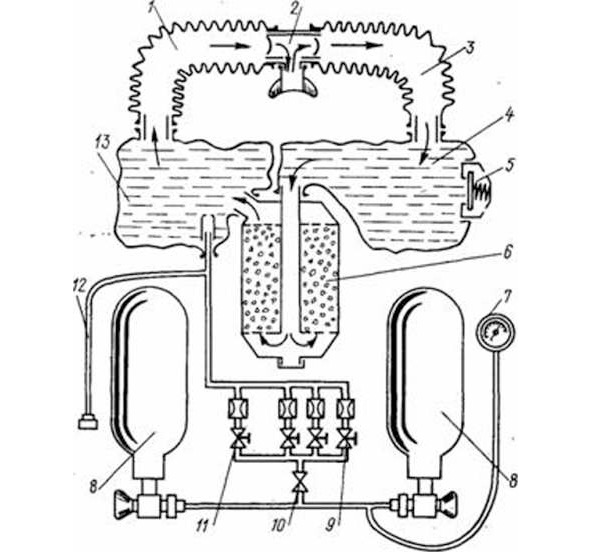 Принципиальная схема аппарата замкнутого цикла приведена на рис. 4.