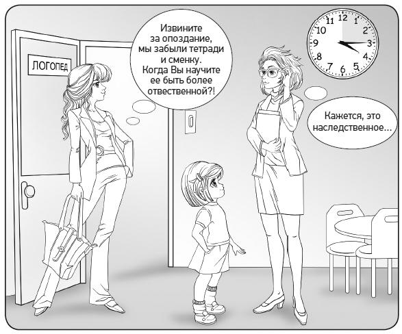 Важны действия родителей, их самоорганизация, потому что ребенок учится в своей семейной системе, глядя на самых близких. Если родители заранее, с вечера, помогают собирать (пока ребенок маленький) вещи, готовят сменную обувь, проговаривают, что планируется завтра, без опозданий, полностью укомплектованным приводят ребенка на занятия, постепенно передавая ответственность по этим делам ребенку, то планирование, самоорганизация и самоконтроль успешно формируются. Если на занятия ребенок регулярно опаздывает, а сменка периодически забывается, то ожидать ответственного поведения не стоит (рис. 7). Остается лишь надеяться на педагогов, которые станут значимыми взрослыми и на своих занятиях будут формировать произвольность, регуляцию и контроль.