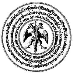 позолоченными колонками толщиной въ три дюйма; на нихъ покоился балдахинъ въ видѣ башенки, поднимавшейся на три локтя въ вышину. Съ каждой стороны балдахина стояло по серебряному орлу съ распростертыми крыльями. На вышеозначенномъ престолѣ сидѣлъ Его Царское Величество въ кафтанѣ, осыпанномъ всевозможнѣйшими драгоцѣнными камнями и вышитомъ крупнымъ жемчугомъ. Корона, которая была на немъ поверхъ черной собольей шапки, была покрыта крупными алмазами, также какъ и золотой скипетръ, который онъ, вѣроятно въ виду его тяжести, по временамъ перекидывалъ изъ руки въ руку. Передъ трономъ Его Царскаго Величества стояло четыре молодыхъ и крѣпкихъ князя, по двое съ каждой стороны, въ бѣлыхъ дамастовыхъ кафтанахъ, въ шапкахъ изъ рысьяго мѣха и бѣлыхъ сапогахъ; на груди у нихъ крестообразно висѣли золотыя цѣпи. Каждый держалъ на плечѣ серебряный топорикъ, какъ бы приготовившись ударить имъ. У стѣнъ, кругомъ, слѣва и напротивъ царя, сидѣли знатнѣйшіе бояре, князья и государственные совѣтники, человѣкъ съ 50, всѣ въ очень роскошныхъ одеждахъ и высокихъ черныхъ лисьихъ шапкахъ, которыя они, по своему обычаю, постоянно держали на головахъ. Въ пяти шагахъ отъ трона вправо стоялъ государственный канцлеръ. Рядомъ съ престоломъ великаго князя направо стояла золотая держава, величиной съ шаръ для игры въ кегли, на серебряной, рѣзной пирамидѣ, которая была высотою въ два локтя. Рядомъ съ державою стояла золотая чашка для умыванія и рукомойникъ съ полотенцемъ, чтобы Его Царское Величество, какъ только приложатся къ его рукѣ, могъ умыться6.