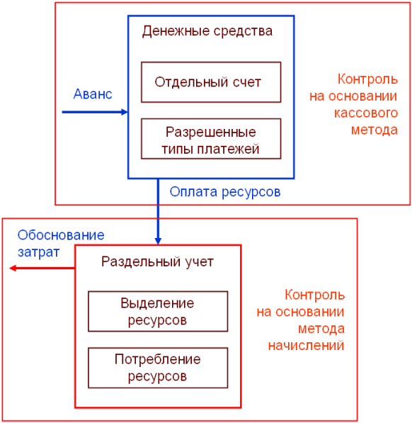 Раздельный учет в сфере ГОЗ по методу начислений дополняет систему финансового мониторинга платежей с отдельных счетов (кассовый метод контроля) – рисунок 1.2.