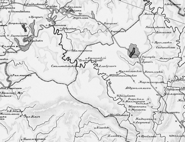 В 1758 году два симбирских купца, оба Иваны — Твердышев и Мясников, основали на Юрюзани и её левом притоке Катаве железоделательные заводы: Юрюзань-Ивановский и Катав-Ивановский[43]. Спустя несколько лет были основаны также Симский и Усть-Катавский, а также небольшой завод на правом притоке Юрюзани Минке. Строительство заводов именно на реках в то время обусловливалось объективной необходимостью. С одной стороны, река, на которой ставилась плотина и образовывался пруд, давала механическую энергию, необходимую для приведения в движение молотов, воздуходувных и других механизмов. С другой — река служила дорогой для вывоза продукции к местам потребления. Подобных горных заводов, как пишет Алексей Иванов[44], на Урале было построено около 250, что дало основание характеризовать их как уникальный культурный феномен, получивший название «горнозаводская цивилизация». Селение строилось вокруг завода и пруда. Вот что пишет А. Иванов по поводу таких селений: «Горные заводы стояли в распадках — прудам удобнее лежать меж холмов, поэтому оба берега пруда и речки были крутые, улочки шли террасами. Жить здесь было неудобно, однако завод строили не там, где удобно жить, а там, где удобно работать. … И посёлок, загнанный на косогоры, жертвовал заводу радостью жизни». Ну прямо как про Калмаш написано, разве что пруда в Калмаше никогда не было, однако отличие промышленного посёлка от крестьянских деревень на Юрюзани обрисовано точно.