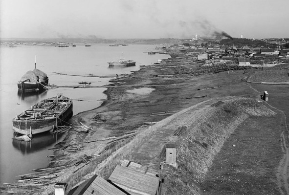 Ну и приведу несколько тех самых «жёлтых фотографий на толстой бумаге», которые дают представление о том, как выглядели эти суда, более похожие на огромные утюги, вынесшие на своих спинах чугунно-железную тяжесть и тут же, в пункте прибытия, продаваемые на слом — возвратить их назад было невозможно. К слову, далеко не все из этих фотографий «жёлтые» — пионер русской цветной фотографии Сергей Михайлович Прокудин-Горский успел запечатлеть барки в цвете, и теперь эти уникальные фото России начала прошлого века находятся в публичном доступе. Сколько замечательных людей покинуло тогда родину и составило гордость и славу уже иных стран: авиаконструктор Сикорский — создатель вертолёта, Зворыкин, по праву считающийся изобретателем телевидения… Да, наконец, певец Шаляпин! Мне посчастливилось в Берлине посетить фотовыставку «Мир в цвете до Первой мировой войны», и ключевое место там занимали работы Прокудина-Горского. Будет ли когда-нибудь подобная выставка в России? К сожалению, из чисто издательских соображений мне пришлось перевести все фотографии в чёрно-белые, а два изображения вообще взяты из общедоступных интернет-ресурсов, куда были скопированы с бумажных отпечатков — владелец оригинала, если он вообще существует, мне не известен.