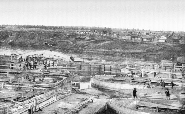 …Эти жёлтые фотографии на толстой бумаге, эти одинаковые бородатые мужики, торопливость их жестов, их робость перед объективом, как перед барином, уже непонятная нам скученность людей при работе… Как-то даже неловко: чем тут гордиться? В нашей жизни всегда не хватает эффектности, броскости, позы. И барки эти тоже — ну гробы гробами…