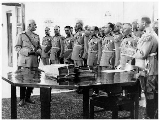 Реза-шах и его генералитет, 1940 год. Он так много вложил в армию средств, а она отказалась воевать, когда потребовалось.