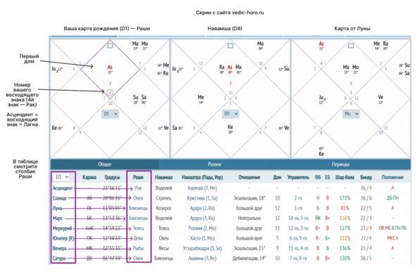 Согласно Кала Пуруше, знаки зодиака соотносятся с домами гороскопа. Первый знак Овна соотносится с первым домом гороскопа. Телец — со вторым, и так далее.