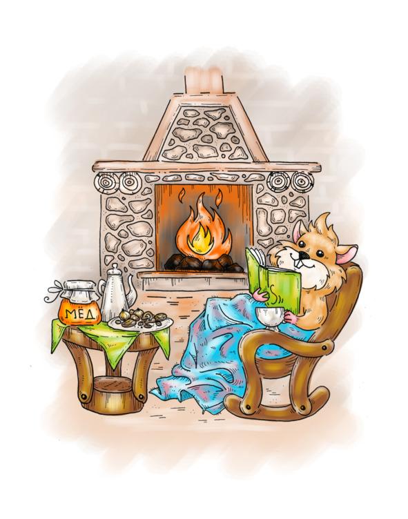 Зверёк был очень добрым и трудолюбивым. В своей уютной норке он построил дымоход. Поэтому когда долгими зимними вечерами он топил печку, чтобы не замерзнуть, дым не мешал другим жителям леса — он уходил через длинную трубу высоко вверх. Рядом с печкой у Хомяши стояла постелька, тумбочка и столик. Всё это он соорудил своими лапками из веток деревьев и листьев. А ещё было зеркальце, которое одна девочка потеряла в лесу, часы и небольшой котелок. Котелок был очень старым, его тоже кто-то забыл в лесу во время пикника. Хомяша притащил его в норку — готовил в нём еду и кипятил чай. Теперь, сидя у печки, он попивал горячий чай из самовара и читал книжки.