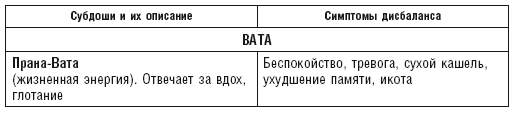Причина любой болезни – это нарушение баланса одной, двух или всех трёх дош – Ваты, Питты и Капхи. В нормальном состоянии, когда человек здоров, доши должны находиться в индивидуальном равновесии. Говорится, что в момент смерти все три доши выходят из равновесия. Когда какая-то доша сильно повышается, она имеет тенденцию угнетать две другие доши. Выходит, каждая доша может находиться в трёх состояниях: возбуждения, угнетения или равновесия. Любой выход из равновесия приводит к какому-либо заболеванию.