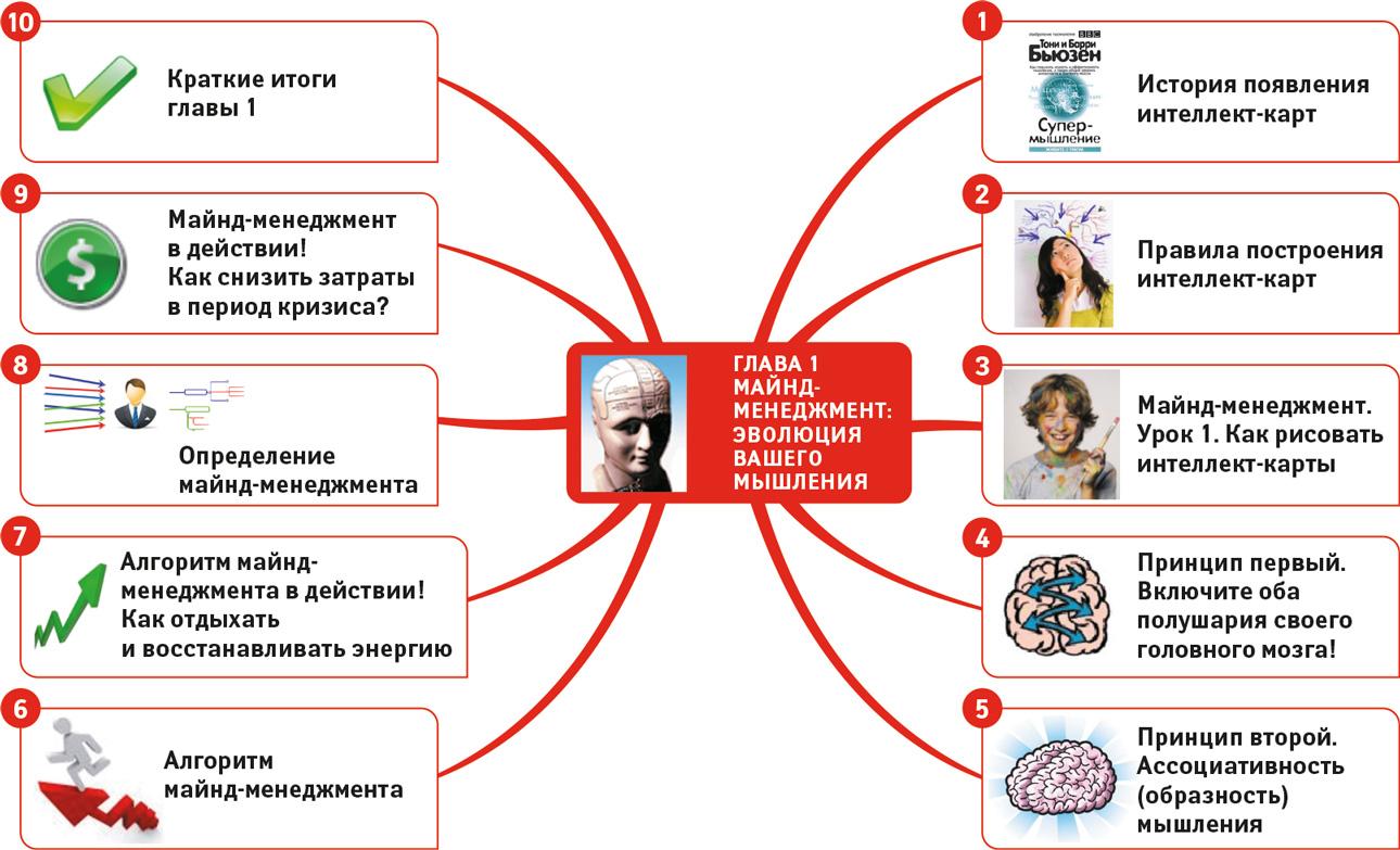 Попробуйте построить свою первую интеллект-карту, пользуясь первым уроком на сайте книги www.майнд-менеджмент.рф.