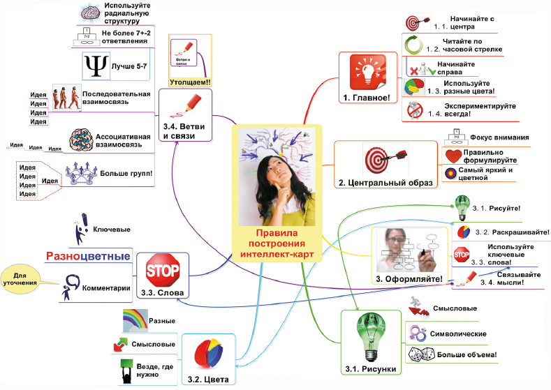 ♦ познакомитесь с основными принципами работы интеллект-карт;