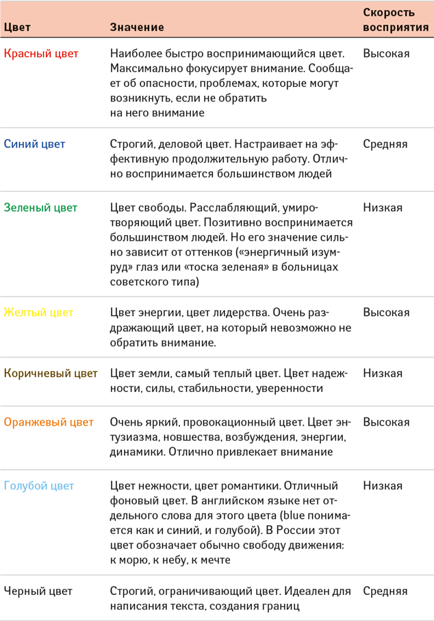 1.3. Используйте разные цвета! В выбираемых нами цветах всегда больше смысла, чем может показаться. Цвет мы воспринимаем мгновенно, а на восприятие текста нужно время. Разные цвета могут по-разному восприниматься и имеют разное значение в разных культурах и у разных людей. Более подробно об этом рассказано ниже.