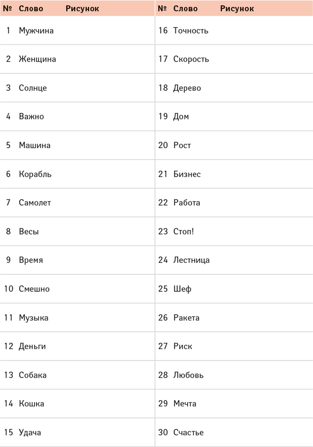 Важное дополнение: визуальная ассоциация на каждое из приведенных слов у вас появится почти сразу же. Рисуйте именно эту ассоциацию! Потому что потом, вспомнив визуальный символ, ваше сознание легко достанет из бессознательного связанное с ним слово.