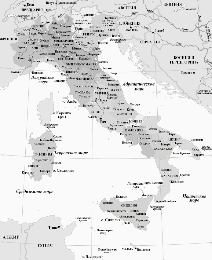 Если составлять историю Италии, используя только хронологический принцип, потеряется региональная специфика; если же отталкиваться исключительно от регионов, будут неизбежны повторения. В мой рассказ включены как основополагающие события общей истории в хронологическом порядке, так и сведения об отдельных регионах. В тексте также будут встречаться вставки с отдельными темами, заслуживающими внимания читателя.