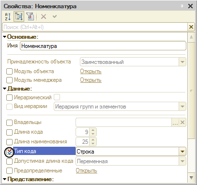 Есть возможность и более тонкого контроля, когда можно проконтролировать не просто наличие, например, справочника Номенклатура, но и то, что его код должен иметь тип Строка. В этом случае разработчик может установить у этого свойства в расширении флажок