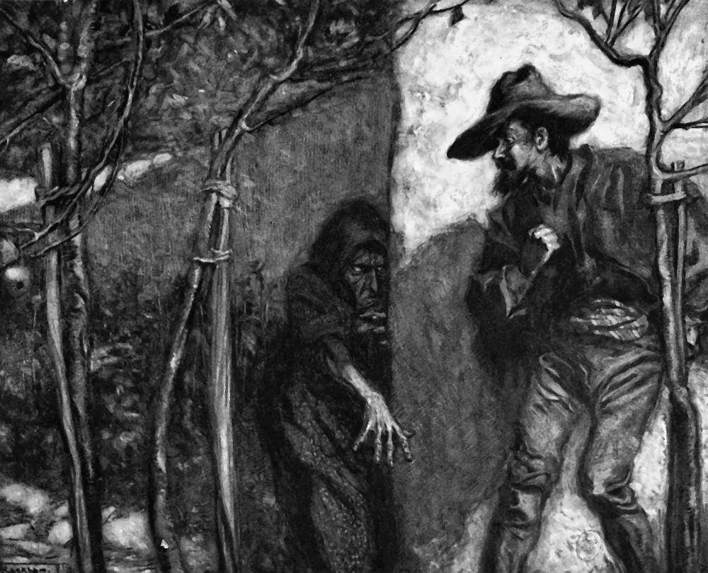 Der Junge ging auch seines Weges und fing wieder an vor sich hin zu reden: »Ach, wenn mir's nur gruselte; ach, wenn mir's nur gruselte!« Das hörte ein Fuhrmann, der hinter ihm herschritt, und fragte: »Wer bist du?« »Ich weiß nicht«, antwortete der Junge. Der Fuhrmann fragte weiter: »Wo bist du her?« »Ich weiß nicht.« »Wer ist dein Vater?« »Das darf ich nicht sagen.« »Was brummst du beständig in den Bart hinein?« »Ei.« antwortete der Junge, »ich wollte, daß mir's gruselte, aber niemand kann mir's lehren.« »Laß dein dummes Geschwätz«, sprach der Fuhrmann, »komm, geh' mit mir, ich will sehen, daß ich dich unterbringe.« Der Junge ging mit dem Fuhrmann, und abends gelangten sie zu einem Wirtshaus, wo sie übernachten wollten. Da sprach er beim Eintritt in die Stube wieder ganz laut: »Wenn mir's nur gruselte: wenn mir's nur gruselte!« Der Wirt, der das hörte, lachte und sprach: »Wenn dich danach lüstet, dazu sollte hier wohl Gelegenheit sein.« »Ach schweig stille«, sprach die Wirtsfrau, »so mancher Vorwitzige hat schon sein Leben eingebüßt, es wäre Jammer und Schade um die schönen Augen, wenn die das Tageslicht nicht wieder sehen sollten.« Der Junge aber sagte: »Wenn's noch so schwer wäre, ich will's einmal lernen, deshalb bin ich ja ausgezogen.« Er ließ dem Wirt auch keine Ruhe, bis dieser erzählte, nicht weit davon stände ein verwünschtes Schloß, wo einer wohl lernen könnte was gruseln wäre, wenn er nur drei Nächte darin wachen wollte. Der König hätte dem, der's wagen wollte, seine Tochter zur Frau versprochen, und die wäre die schönste Jungfrau, welche die Sonne beschien; in dem Schloße steckten auch große Schätze, von bösen Geistern bewacht, die würden dann frei und könnten einen Armen reich genug machen. Schon viele wären wohl hinein, aber noch keiner wieder herausgekommen. Da ging der Junge am anderen Morgen vor den König und sprach: »Wenn's erlaubt wäre, so wollte ich wohl drei Nächte in dem verwünschten Schloße wachen.« Der König sah ihn an, und weil er ihm gefiel, sprach er: »Du darfst dir noch dreierlei ausbitten, aber es müssen leblose Dinge sein, und das darfst du mit ins Schloß nehmen.« Da antwortete er: »So bitt' ich um ein Feuer, eine Drehbank und eine Schnitzbank mit dem Messer.« Der König ließ ihm das alles bei Tage in das Schloß tragen. Als es Nacht werden wollte, ging der Junge hinauf, machte sich in einer Kammer ein helles Feuer an, stellte die Schnitzbank mit dem Messer daneben und setzte sich auf die Drehbank.