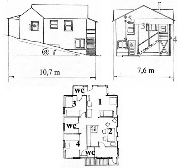 Арендованная Гленной Шарп постройка являлась одним из самых больших гостевых домов. И одновременно с этим — нелепых по виду и конструкции. Дом был как бы встроен в склон холма, равномерно понижавшегося в северном направлении с крутизной около 11°- главный вход находился на вершине и при взгляде с юга на север здание казалось одноэтажным. Однако при взгляде с противоположной (северной) стороны становилось ясно, что дом имеет два этажа. При этом внутренняя лестница отсутствовала, и чтобы пройти с этажа на этаж, требовалось выйти на улицу и воспользоваться наружной лестницей. Упомянутая лестница являлась одновременно и «черным» выходом.