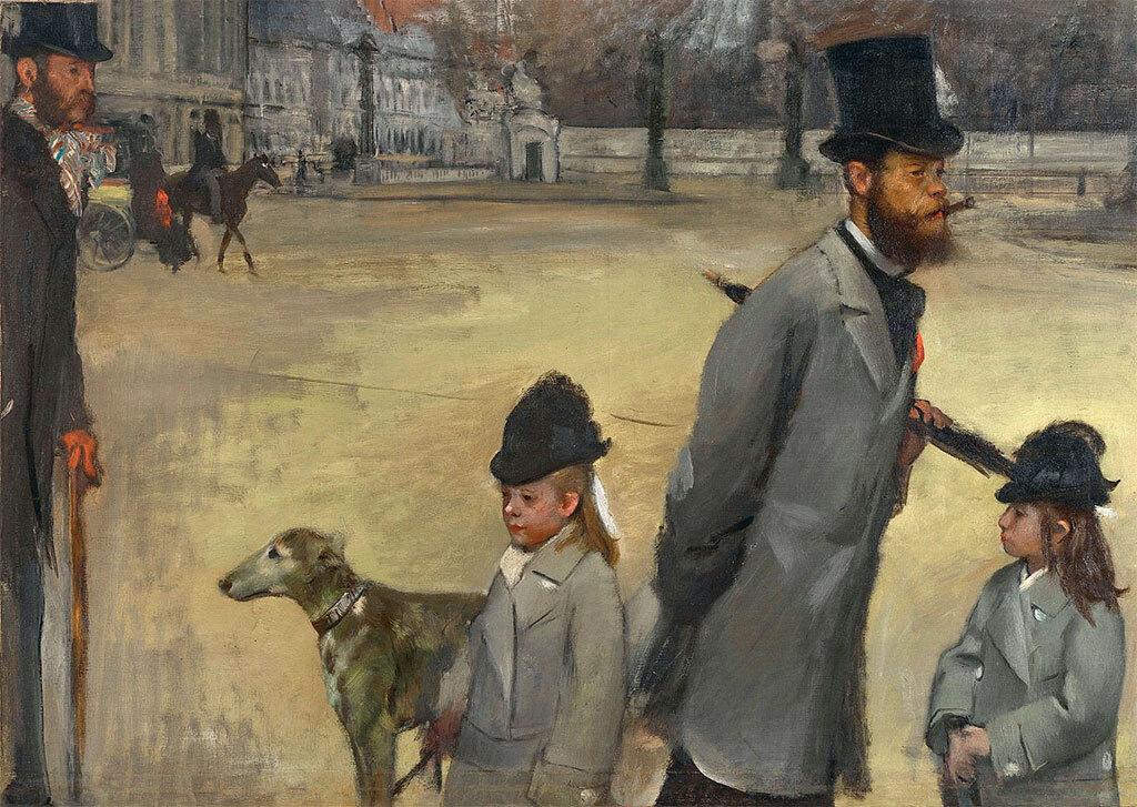 Можно предположить, что это же его пристрастие способствовало созданию картины «Площадь Согласия». На ней он запечатлел своего друга Людовика Лепика, изображенного в движении. Причем интересно, что к тому времени развивающаяся фотография в значительной степени повлияла на сам характер восприятия художников и, в частности, на Дега, который сам увлекался ею. Нельзя сказать, что фотография опережала или каким-то образом навязывала художникам свои законы, но она подсказывала, как выхватывать и компоновать композиции – «мозаичные фрагменты жизни».