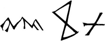 Among the Assyrio-Babylonians the use of an entirely different kind of writing material caused the development of a very different type of script. The lands inherited by these people were clay lands and they made enormous use of clay and its products for building materials, utensils, and also writing material. The early inhabitants of this region very soon found that a permanent record could be made by marking a lump of soft clay with a sharp stick and then drying it in the sun or baking it in an oven. Naturally the picture very soon degenerated into a series of marks made by holding the stick, or pointed implement, nearly parallel to the clay and then thrusting it into the surface. The resultant mark was like the following: