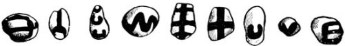 Among the earliest methods of communicating ideas to the absent, pictures hold the largest place. Other methods were knots, ordinarily known by the name quipus which they bear among the ancient Peruvians. The number and arrangements of the knots and the color of the cords made possible a considerable range of expression. Closely associated with these were tallies, or notched sticks, and wampum, or strings of colored shells or beads arranged in various designs. Here perhaps may also be classed the so-called Ogham inscriptions, made by arrangements of short lines in groups about a long central line. The short lines may be either perpendicular to the central line or at an angle to it. They may be above it, below it, or across it, thus providing a wide range of combinations with a corresponding variety of expression. These primitive methods survive in the rosary, the sailor’s log line with its knots or the knotted handkerchief which serves as a simple memorandum. They may run all the way from purely mnemonic signs to a fairly well developed alphabet.
