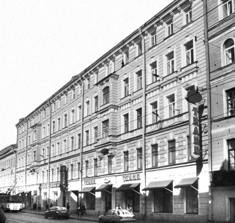 В 1887 г. во дворе этого дома им выстроено новое каменное пятиэтажное здание. Большинство квартир в нем составляли трехкомнатные с умеренной годовой платой, а среди жильцов дома были доктор, механик, техник, провизор, бухгалтер, инженер, офицеры (капитан и поручик), студенты Военно-медицинской академии. Характерен для улицы в целом был и многонациональный состав дома[83]. Дом оснастили по последнему слову комфорта того времени. Здесь устроили 18 ватерклозетов, 18 раковин, 18 ванн. При каждой квартире имелся чулан для дров, чердак и общая прачечная[84].