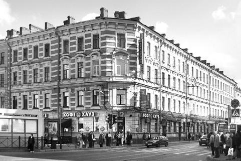 Дом снаружи оштукатурили, в него провели водопровод и вместо «отхожих мест» установили ватерклозеты и раковины[57]. По-прежнему санкт-петербургские купцы арендовали в этом доме торговые помещения: Егоров содержал в подвальном этаже трактир, Алекин – «ренский погреб», Вишняков – гастрономический магазин, Безруков – «суровский» и «табачный» магазины, мастер Заитовец владел «магазином часовых дел», а крестьянин Василий Бантов – «магазином бакалейных товаров»[58]. В доме, где прежде большинство составляли однокомнатные и двухкомнатные квартиры, теперь устроили семикомнатные, однако больше всего было трех– и четырехкомнатных квартир. Социальный состав дома составляли мещане и купцы[59].