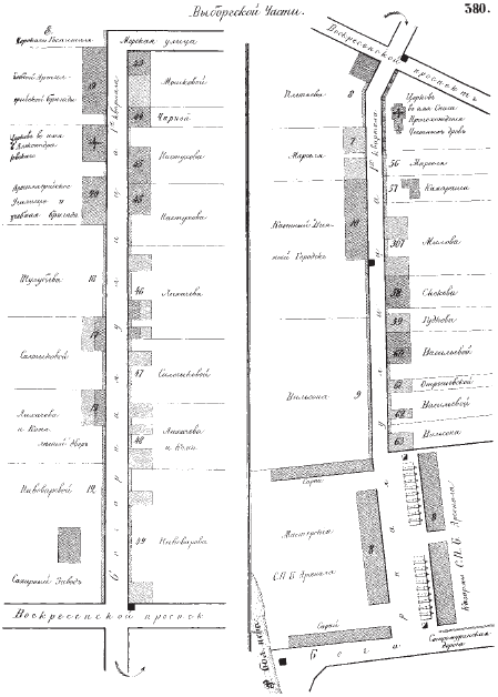 О доме № 9 по Финскому переулку мы расскажем позже. С. П. Петров владел им до 1917 г. Что касается лицевого дома, выходившего на Симбирскую улицу, и внутридворовых флигелей, то они сменили немало владельцев.