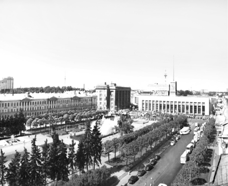 Реконструкция района Финляндского вокзала стала наиболее крупным градостроительным мероприятием, предусмотренным Генеральным планом 1948 г. Преобразование участка перед Финляндским вокзалом позволило радикально изменить облик площади Ленина, которая была расширена и доведена до Арсенальной набережной. Западная и восточная стороны площади уравновешены возведением здания Исполкома Калининского района.