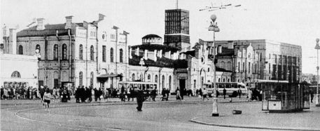 После реконструкции западной части привокзальной площади началось преобразование внутридворовых территорий. При этом была разобрана левая часть дома № б на пл. Ленина (арх. П. Ю. Сюзор, 1879 г.). Фото 1969 г.