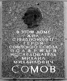 Наше знакомство с площадью Ленина осталось не полным, если бы мы не упомянули, что в доме № 3 с 1946 по 1968 г. жил Герой Советского Союза, полярный исследователь М. М. Сомов. Об этом напоминает мемориальная доска на фасаде дома[23].
