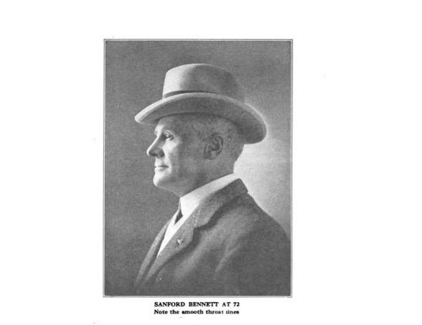 На данный момент я не обнаружил никаких изменений в физическом состоянии г-на Сэнфорда Беннета, существенно отличающихся от моего последнего отчета по этому делу, сделанного 1 апреля 1906 года. Кроме очень легкой степени артериосклероза, я не обнаружил никаких старческих изменений, которые естественно ожидать в возрасте 72 лет — таков нынешний возраст пациента. Лицо становится удивительно гладким, без морщин. Провисание щек, подбородка и горла, заметное 17 лет назад, больше не наблюдается. Он выглядит как необычайно хорошо сохранившийся мужчина средних лет, а его движения свидетельствуют об упругом теле. Вся мускулатура развита замечательно. У него нормальное пищеварение. Не обращает внимания на какую-либо определенную систему питания и, к сожалению, не выполняет моих советов не курить и не переедать.