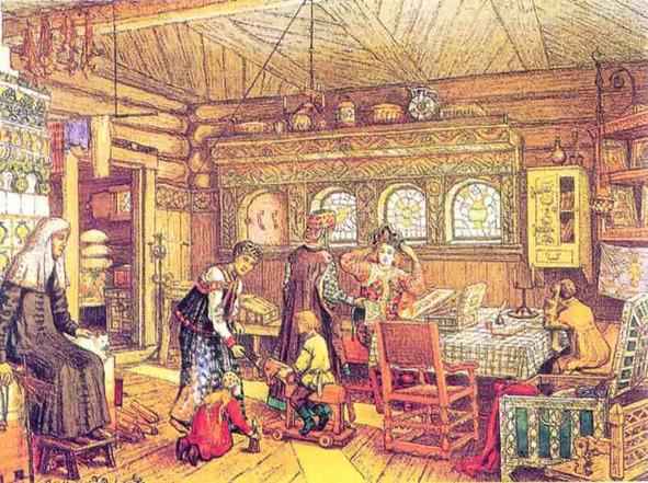 В допетровской Руси основную часть повседневной жизни женщины (в том числе и в аристократической среде) занимала домашняя работа: ведение хозяйства, надзор за челядью, рождение и воспитание детей; и девочек с раннего возраста готовили к выполнению различных работ по хозяйству. Готовили к домашним работам уже с четырех лет, целенаправленно обучали с семи…