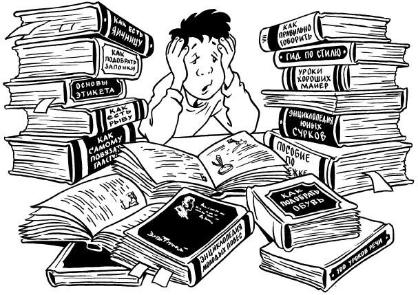 В изучении правил этикета есть своя забавная сторона. Если читать книжки по этикету довольно долго, невольно начинаешь чувствовать себя принцем крови в изгнании. Это приятно. Так что желающие могут обратиться к многочисленной на сегодняшний день справочной литературе. Правилам этикета нынче посвящаются целые книжки. Толщина некоторых превышает кирпич, впору ими диван подпирать. А еще лучше использовать их в качестве гнета при засолке капусты.