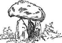 Дольмен в Пролике, Ирландия размеров узкого пролива шириной всего в несколько миль, и оттуда расселились по западным областям Европы, включая Британские острова, а на востоке они через Аравию прошли в Азию. Следует, однако, помнить, что, будучи изначально, вне всякого сомнения, особой расой, по прошествии времени народ мегалита обладал уже не расовым, а лишь культурным единством. Это со всей очевидностью доказывают человеческие останки, обнаруженные в гробницах, точнее, разнообразие форм их черепов[36]. Археологические находки характеризуют строителей дольменов в целом как представителей высокоразвитой для своего времени цивилизации, знакомых с земледелием, скотоводством и до определенной степени с морскими плаваниями. Сами памятники, зачастую впечатляющих размеров, требовавшие при своем возведении обдуманных и организованных усилий, явно говорят о существовании в то время жречества, заботившегося о погребениях и способного контролировать значительные группы людей. Умерших, как правило, не сжиг