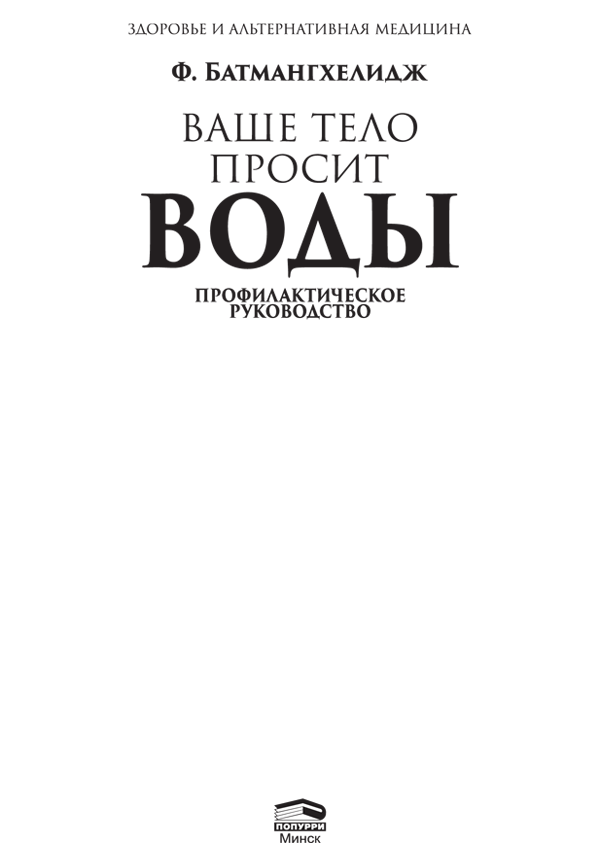 Ваше тело просит воды / Ф. Батмангхелидж ; пер. с англ. Е. А. Бакушева. — Минск : Попурри, 2014. — (Серия «Здоровье и альтернативная медицина»).