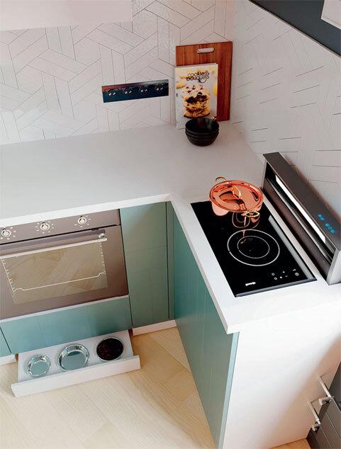 Отличное решение – встроенные в цоколь миски для кормления. Режим питания полезен не только людям, но и животным, и чтобы рядом с тарелочками круглосуточно не был разбросан корм, их очень удобно прятать с глаз долой. А главное, целостности вашего интерьера теперь ничто не угрожает!